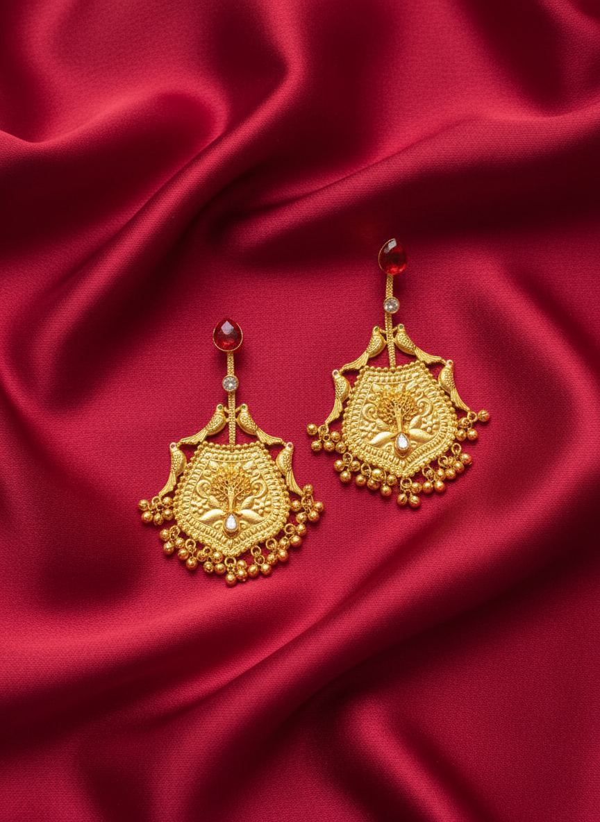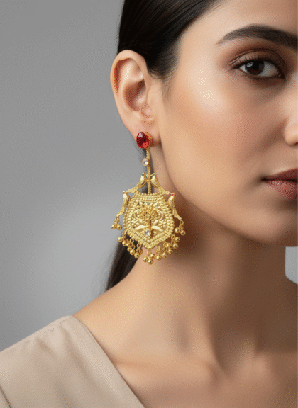 Kashmiri Red Regal Dangler Earrings