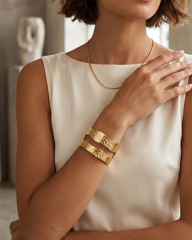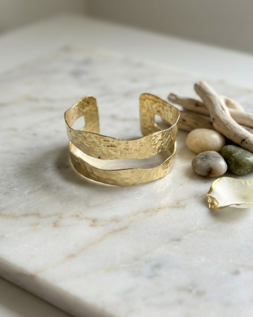 Be the first to review “Golden Wave Hammered Cuff Bracelet”