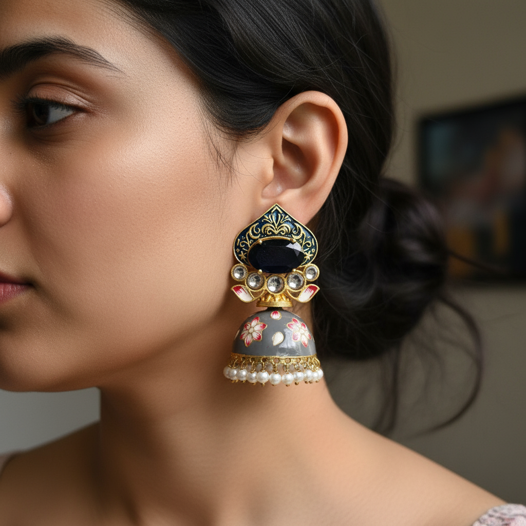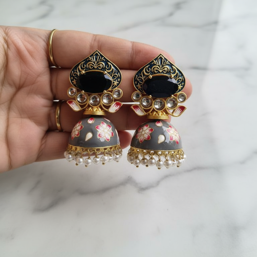 Work: Traditional hand-painted meenakari with intricate floral motifs