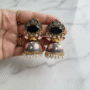 Design: Dome-shaped jhumka with hanging beads for a graceful ethnic look