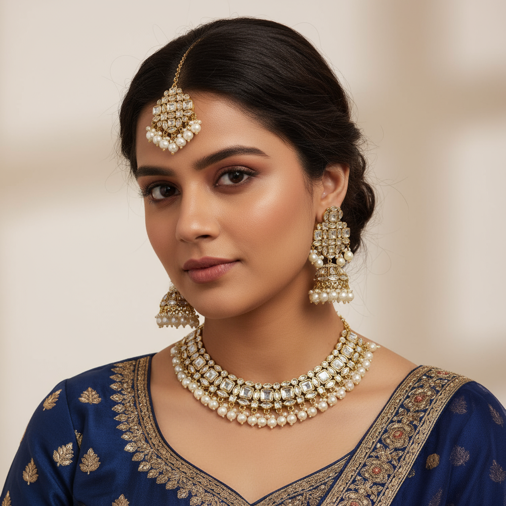 Handle carefully to preserve kundan stone settings and pearl shine