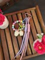 A cute pastel cherry-themed beaded keychain with soft cord tassels, perfect to add a playful and stylish touch to your bags, keys, or backpacks.