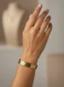 Elevate your “wrist game” with a piece that balances raw industrial strength with high-fashion elegance. Our Textured Gold Bracelet features a unique “hammered” finish that catches the light from every angle, providing a rich, multi-dimensional glow that smooth bracelets simply can’t match.